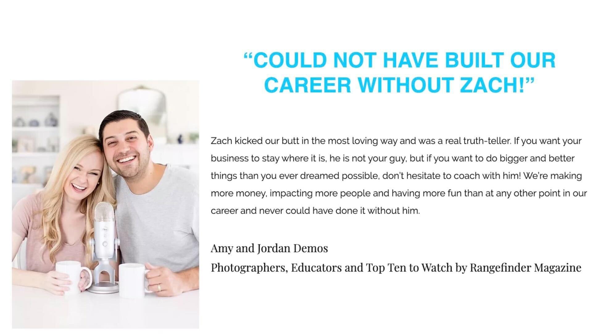 Our coaching includes UNLIMITED access & support to Zach Gray for the duration of the program. Zach has coached over 1,500 photographers from those that are just launching their business to many of the top photographers like Amy & Jordan Demos, Katelyn James, Vanessa Joy & many more.