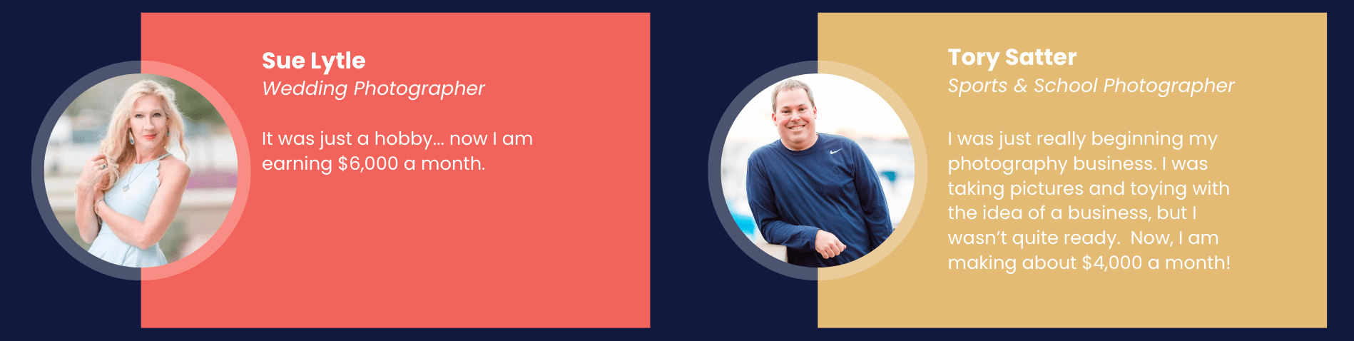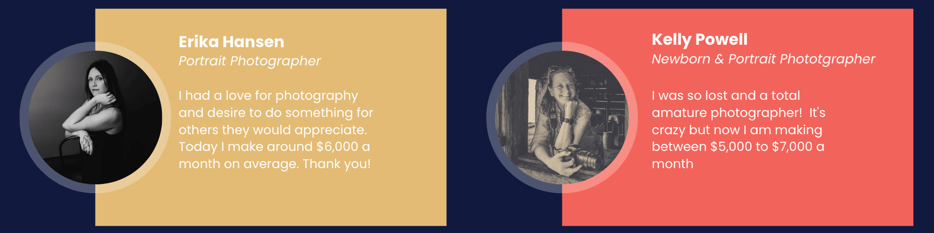 Our training library includes our Photo Business Launch course plus other niche specific professionally produced courses to ensure you have proven curriculum and training to let you dramatically level-up your photography and business & marketing skills - even if you're just getting started.