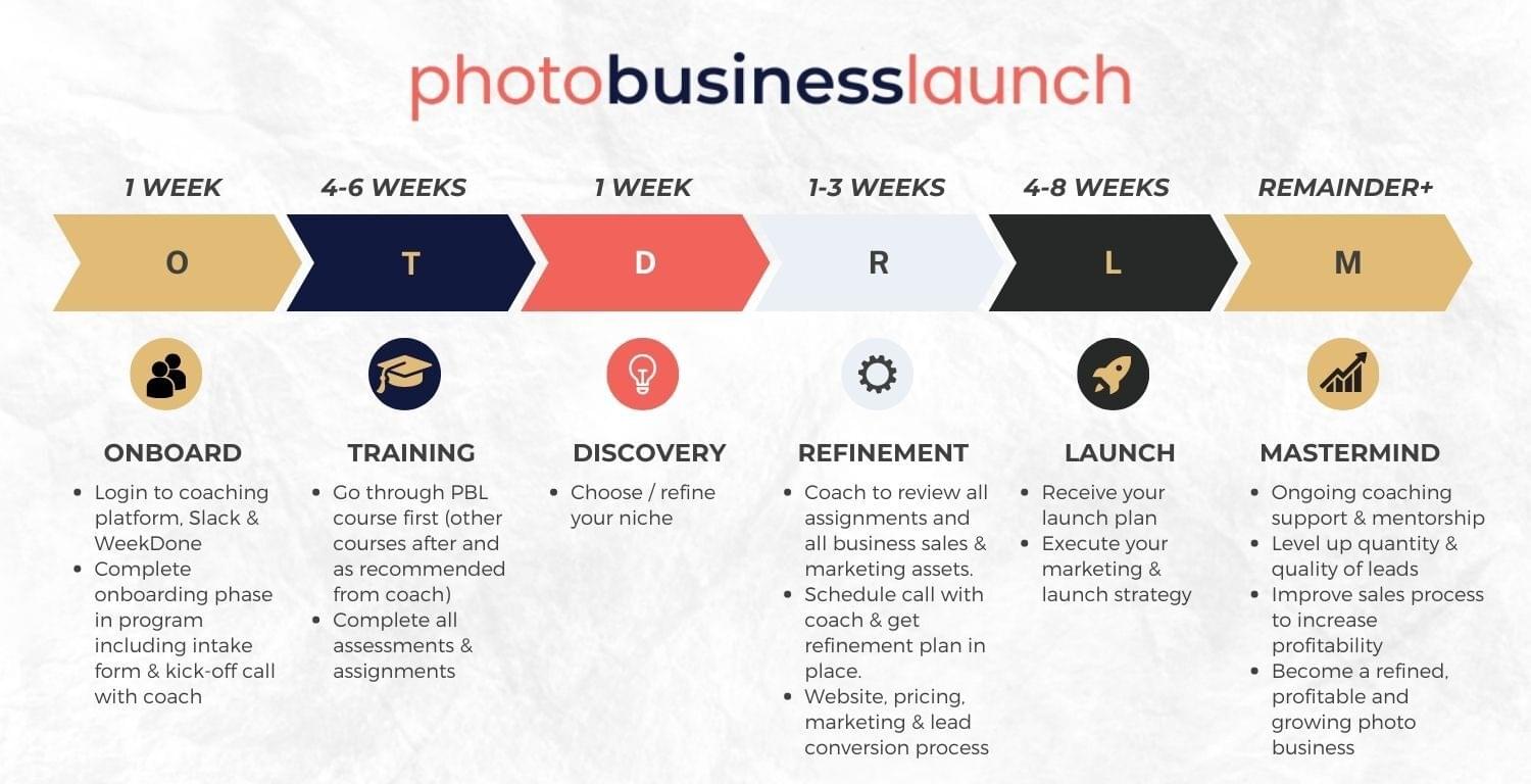 With Photo Business Launch we integrate student execution & accountability throughout the total 6 months of working together so our students are continually making progress towards each larger goal and "success step" or milestone moment.